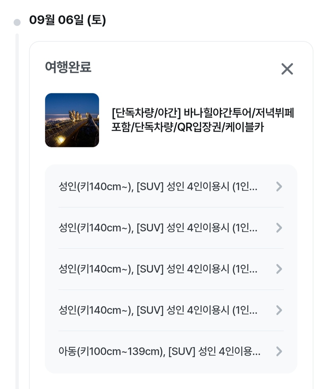 ✔️ 오후/저녁: 바나힐 야간투어 (디너 포함)