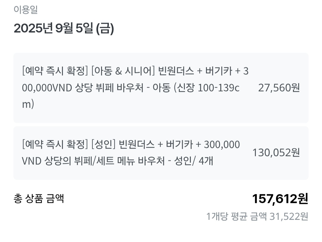 개인적으로는 비추천합니다. 저처럼 나트랑 빈원더스의 스케일과 다양함을 기대하고 가신다면 실망하실 수도 있으니 참고하세요!
